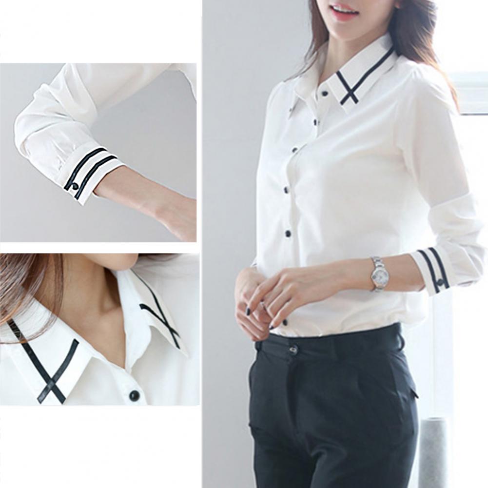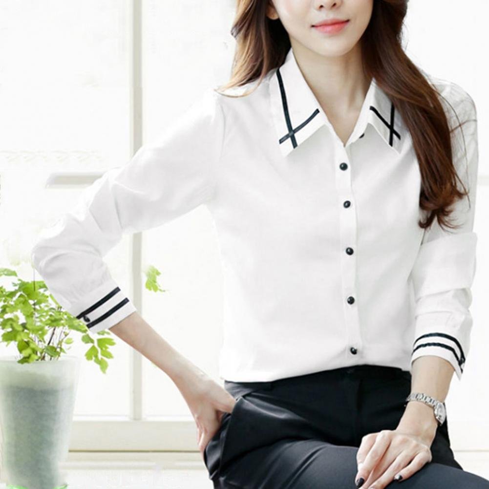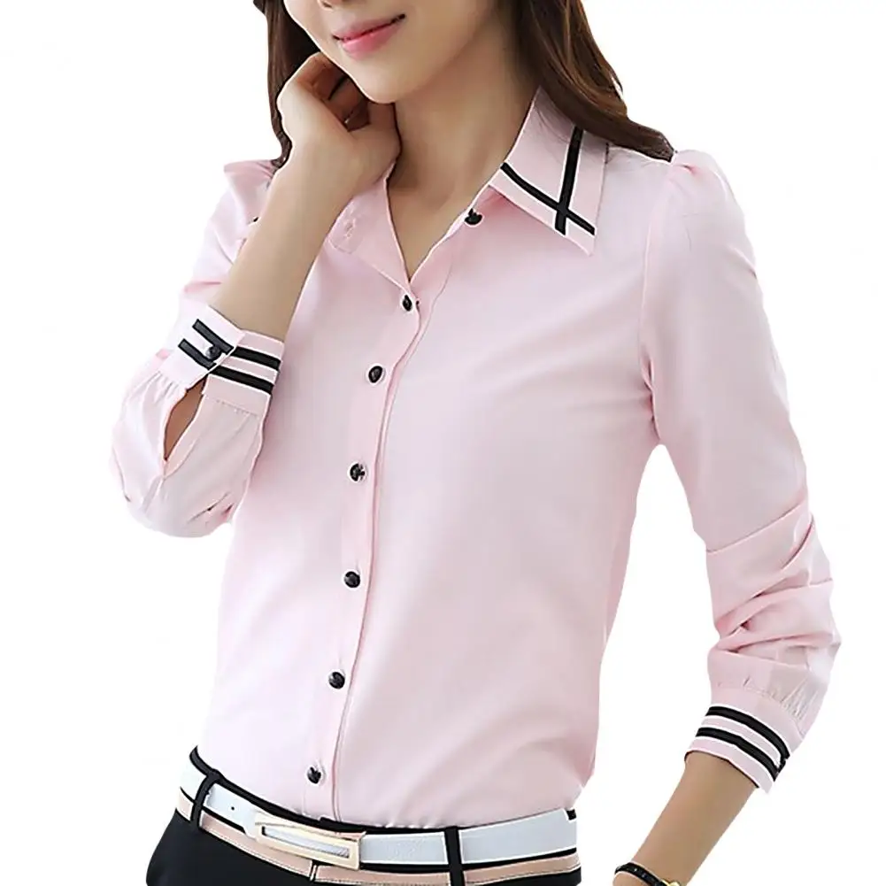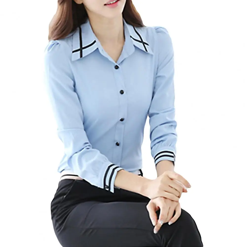 Camisa elegante de manga larga, ajustada con cuello levantado.