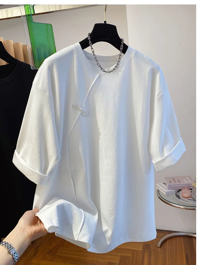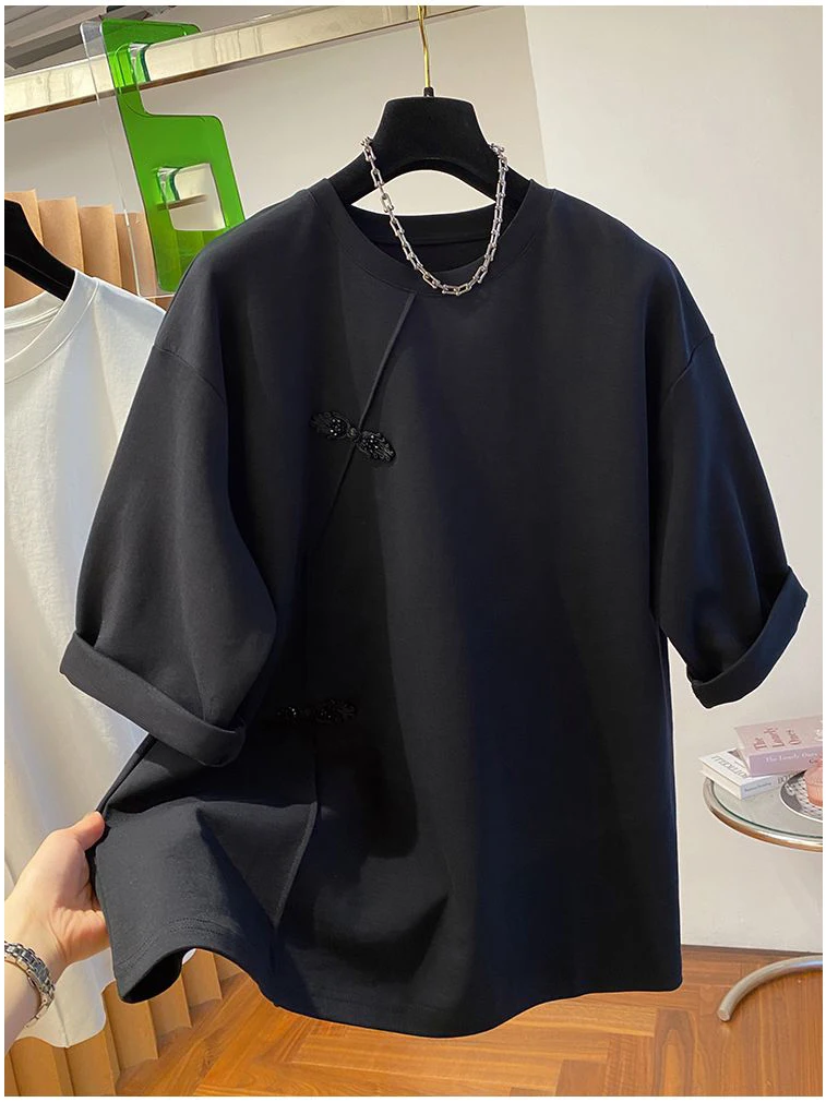 Camiseta, Corta Holgada Cuello Redondo Botones.