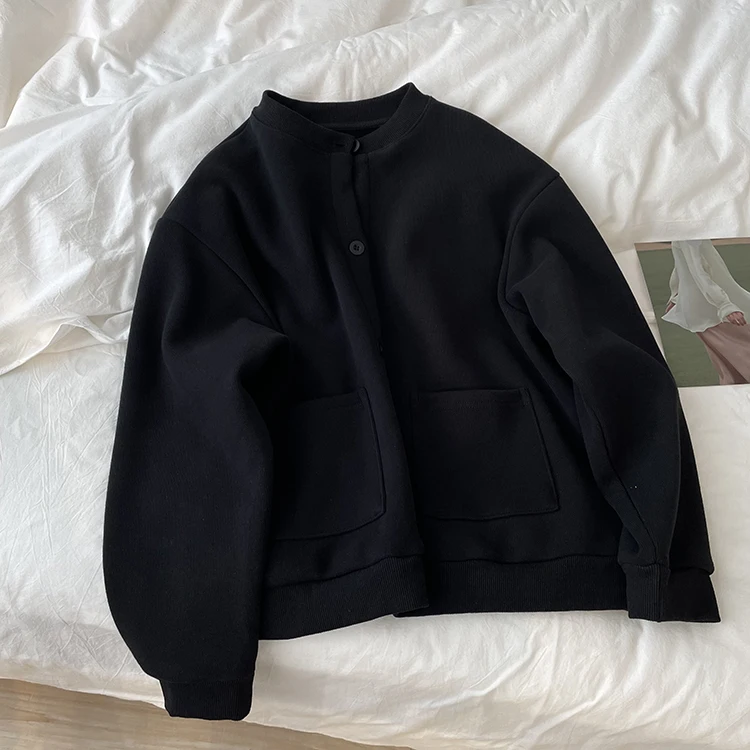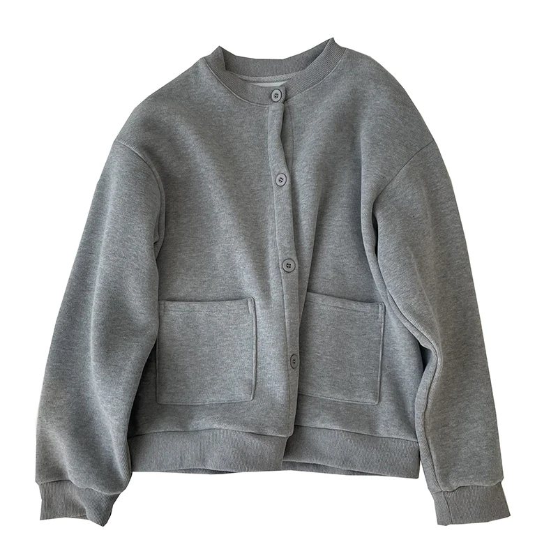 Be the first to review “Chaqueta de Béisbol gris con botones manga larga cuello redondo corte amplio.”