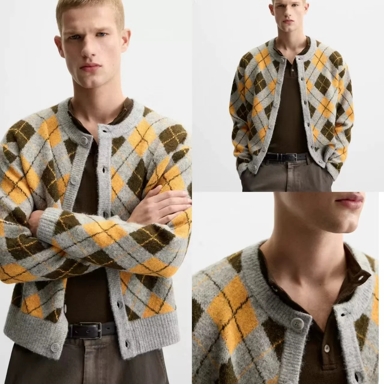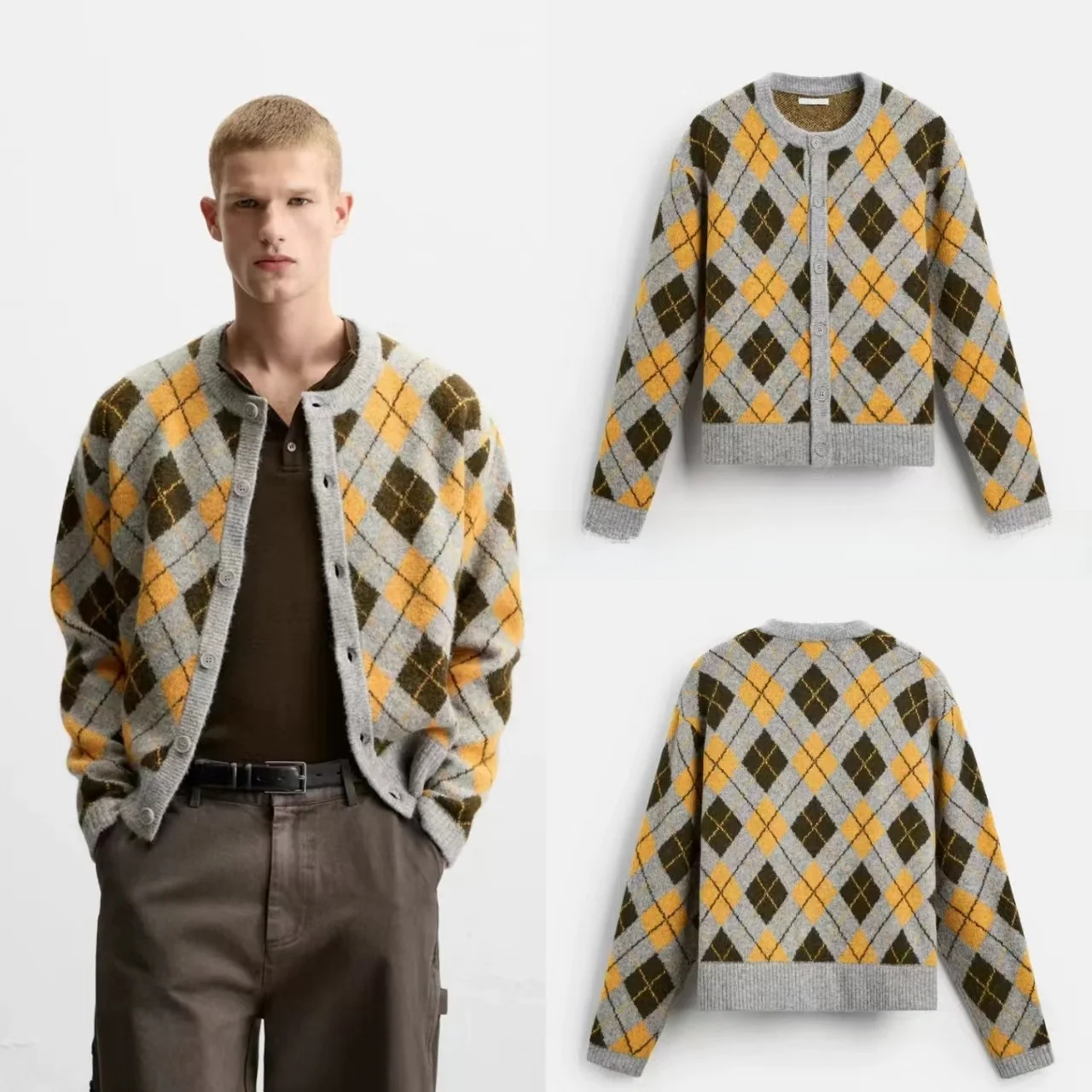 Chaqueta De Punto, manga Larga, Cuello Redondo, Estilo Recto.