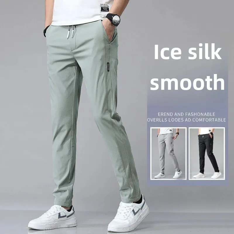 • Material de seda helada: Confeccionados con seda helada, estos pantalones ofrecen una experiencia fresca y cómoda, perfecta para el verano.