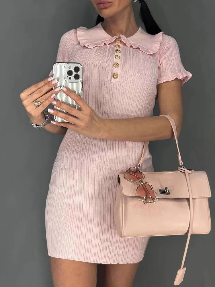 Be the first to review “Vestidos con volantes de cintura alta de punto de manga corta.”