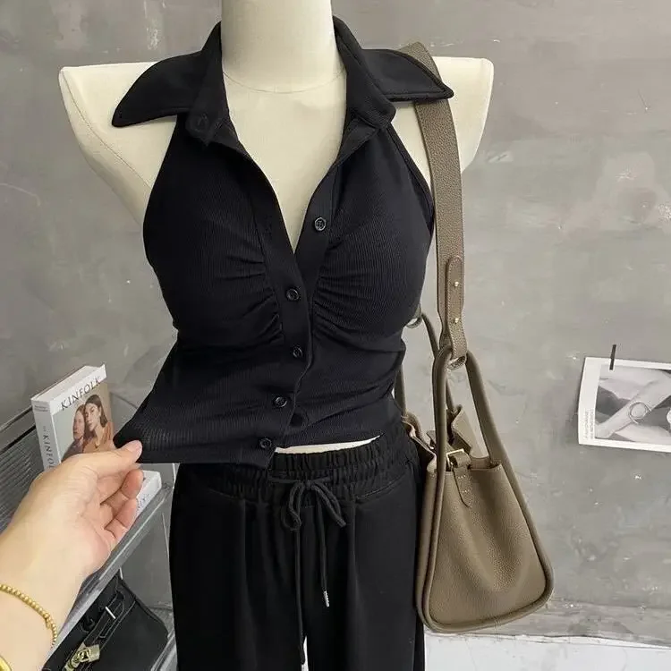 Camisa corta sin mangas con cuello tipo Polo.Camisa corta sin mangas con cuello tipo Polo.