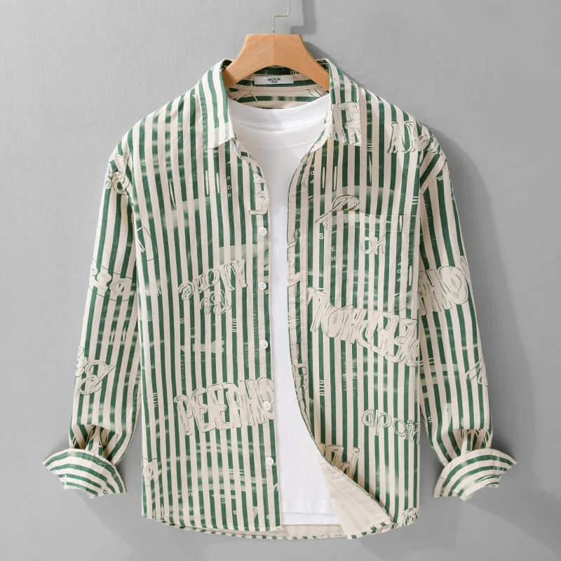 Camisas de manga larga a rayas, con cuello vuelto.Camisas de manga larga a rayas, con cuello vuelto.